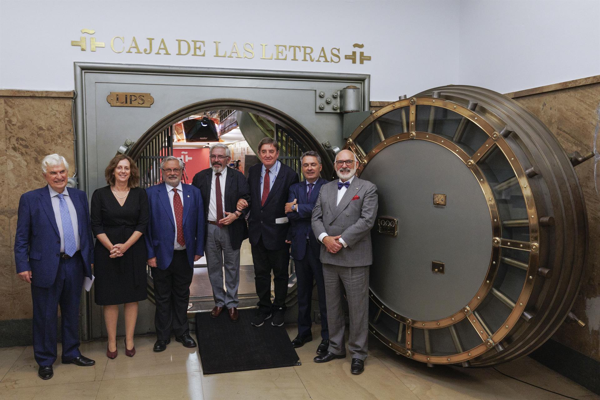 El director de l'Institut Cervantes, Luis García Montero, i la directora general, Carmen Noguero, amb els fills del filòleg i catedràtic Manuel Alvar durant el lliurament del seu llegat a la Caixa de les Lletres, a l'Institut Cervantes a Madrid. EFE