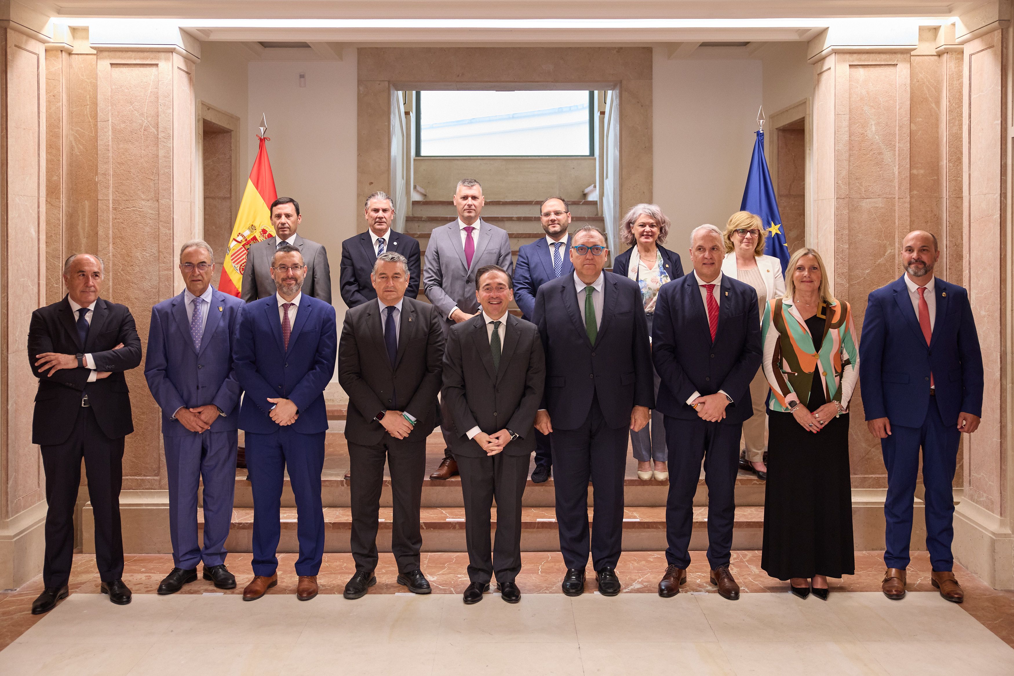 Le ministre des Affaires étrangères, de l'Union européenne et de la Coopération, José Manuel Albares, lors de la réunion avec les maires de Campo de Gibraltar et la Junta de Andalucía après l'accord entre l'Espagne, le Royaume-Uni et l'Union européenne sur Gibraltar